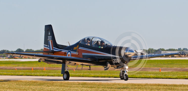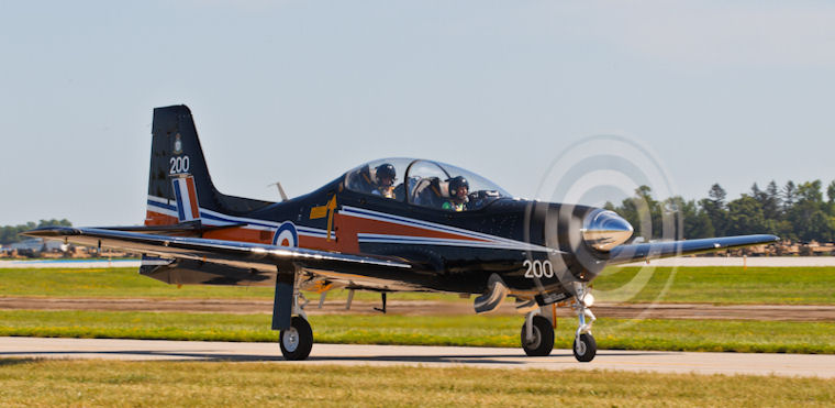 Another panning shot at 1/80th at f18 with a Canon EF 70-200mm f2.8 IS USM II as I had forgotten to reset my shutter speed after taking some pictures to get “prop' disc”. The fact that I got the plane in focus can only be put done to the fact that I had had a couple of days panning practice before this shot. It does make for a nice blurred background, and the blurred marshal also adds to the dimension of speed in the actual picture.