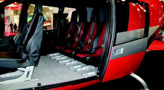 The modularity of the cabin makes the most of the flat floor and the unique high ceiling concept, offering multiple seating arrangements of 1 Pilot + up to 7 passengers, all with individual crashworthy seats. The rear access to the cabin is facilitated by the large clamshell doors; addressing the passenger transport and emergency evacuation roles of the helicopter.