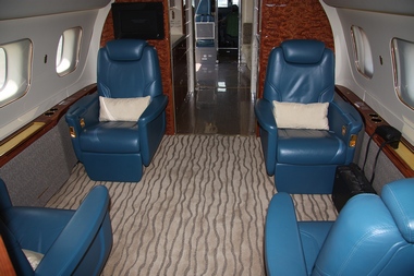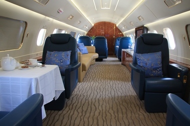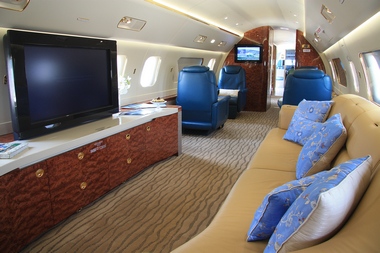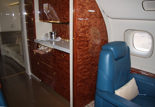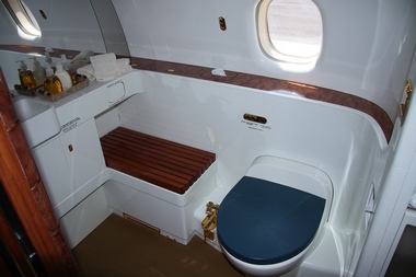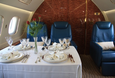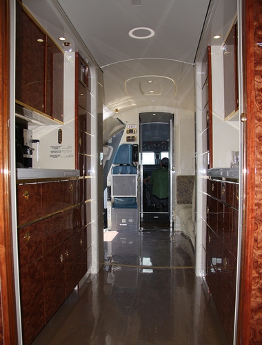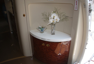 Externally the Lineage 1000 Ultra Large Business Jet looks just like the E190 Regional Jet but that is where the similarities end. Instead of the 110 seats of the E-190 the sumptuous interior of the Lineage's 25.7m long by 2.0m high by 2.67m wide cabin can be divided according to customers' specification in up to five sections that can include a bedroom and washroom with running water, toilet and full stand up shower. A fully equipped Galley as well as a Crew rest station and additional toilet facilities are standard as is the pressurized walk-in baggage section at the rear of the aircraft.