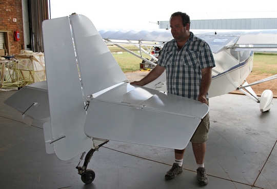 Move around to the port elevator. If a trim tab is installed check its security. Move around the stabilizer and follow the tail section to the rear of the wing. Check the condition of the flap, security, amount of movement on the flap rails and also that the flap push rod has some sideways movement. If there is no side way movement the little bearing is probably seized and requires attention.