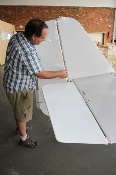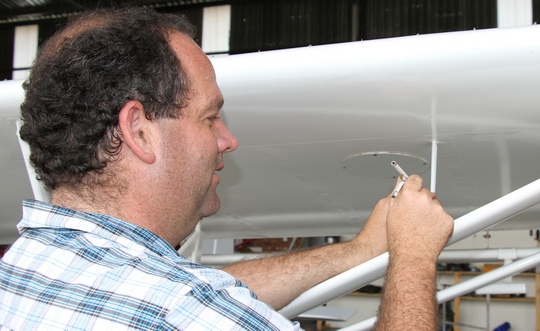 Next we get to the aileron. First thing to check is aileron movement up and down. Before moving it make sure no one is close to the other aileron. I have seen fingers being badly hurt as they got caught in ailerons being moved. Move the aileron up and whilst holding with one hand up check the movement of the push rod for exactly the same reasons as the flap pushrod. The reason for holding the aileron up with one hand is to prevent serious injury and abusive language as someone else pushes the opposite aileron up….