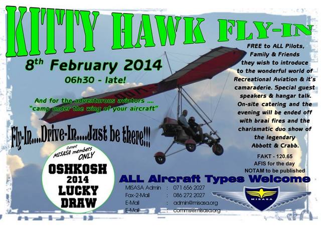 8 February: MISASA Shootout 2014 to be held at Kitty Hawk. Contact Donald Hicks e-mail: wendonair@wendon.co.za or John Boucher e-mail: comms@misasa.org Tel: 082 553 1105
