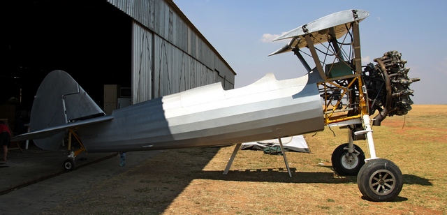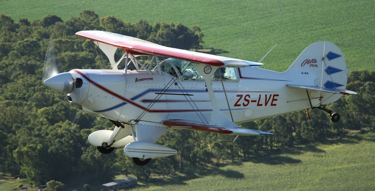 ZS-LVE has been standing for a number of years in a hangar at Rand Airport where Ivan saw her whilst he was trying to sort out the registration of the Stearman. He managed to trace Mike and after a couple of meetings they came to an agreement that suited them both. Ivan who flies Boeing 737-300, 400 and 800's for Comair and has an instructors rating, is a Grade II test pilot, flies Harvards for the Harvard Club and Academy Flying Lions did not have the Pitts on his license and needed a conversion to type. It being December, when the country almost closes down, this proved more difficult than expected as almost all (and there are not that many) Pitt's qualified instructors were not available. However on Saturday 11 January he did his conversion and later first flew ZS-LVE to Springs before taking the aircraft to Petit.