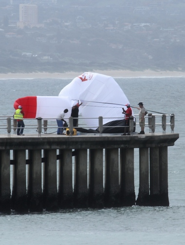 The wind unfortunately did not play ball and the Pylons were for most of the day not inflated. This did not hamper the pilots as the boundaries of the course is demarcated by the north, middle and south piers on the seaward ends of which the pylons will erected for the rest of the competition.