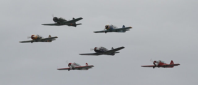 Next on the program was the six ship consitsting of four Yak 52's, one Yak 18 and led by a Nanchang CJ6.