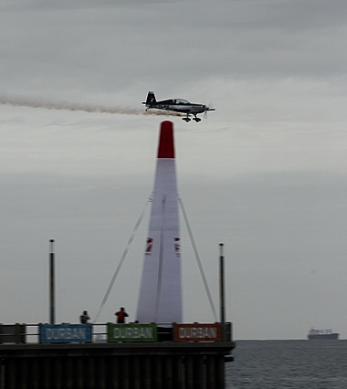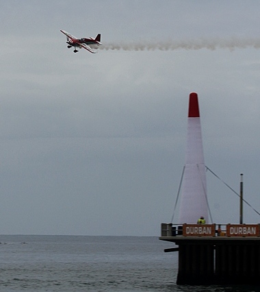 Day two of the Sky Grand Prix and during the morning the sky remained overcast. Friday, being a public holiday meant that Durbanites and out of town visitors flocked to the beachfront to see the second leg of the eliminations. Only five of the ten South African entries would qualify for the finals. The five overseas pilots all had a free pass into the finals.