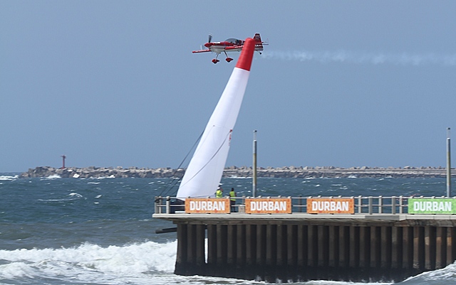 Francois le Vot of France a 43 year old with 4, 000 hours flying time of which 1, 500 are in military jets and the current world number and the 2013 World Aerobatic Champion added the Durban Sky Grand Prix crown to his already impressive list of titles. South Africa's own young aerobatics wiz kid Patrick Davidson finished in second place beating Russia's Mikhail Mamistov who finished third. Local hero, Nigel Hopkins finished in fourth place ahead of the Germany's Phillip Steinbach who finished in fifth position. The rest of the South African's brought up the rear with Mark Hensman seventh, Bertus du Preez in ninth place followed by Barrie Eeles tenth.