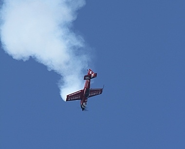As if that wasn't enough adrenal packed action for a day a six nations Free Style Aerobatic Shoot Out was held and the action was simply breath taking. Each new contestant set out to impress the international panel of judges with a display that included manoeuvres that defied the laws of flight and gravity. At the completion of the six flights the two favourites were Nigel Hopkins in the MX2 and Phillip Steinbach in the Sbach, an aircraft that he designed. Unfortunately there could be only one winner and Nigel was narrowly beaten by Germany's Phillip Steinbach.