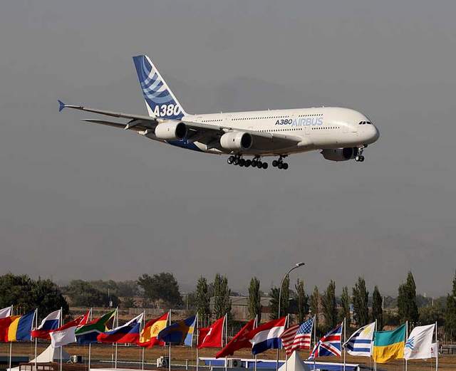 The Airbus Group's A380, the world's largest airliner which took off from its base in Toulouse, France will participate in the International Air and Space FIDAE 2014.
