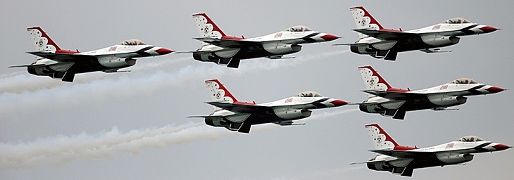 The Thunderbirds' aircraft will be based at the Wittman Regional Airport terminal ramp throughout the weekend, but team members will be participating in various forums and programs during their stay in Oshkosh.