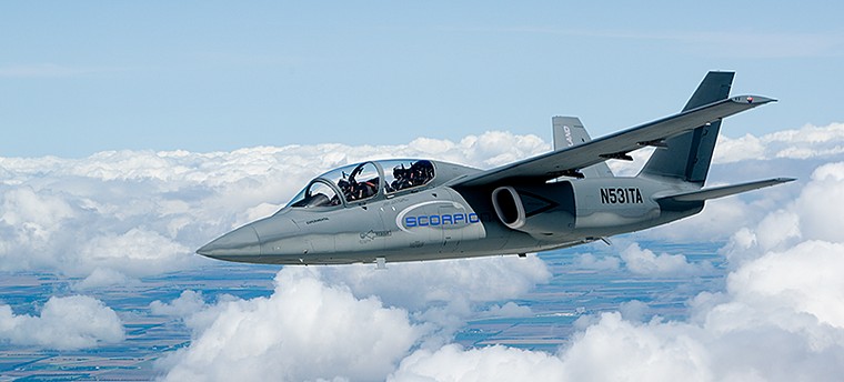 Scorpion is a two-seat aircraft that can be flown from either seat. "There are full flight controls in the front and in the back," says Hinson, the test pilot. This means one pilot can do most of the flying while the other operates ISR sensors or other equipment. The tandem cockpit arrangement could also prove advantageous for foreign sales, where most customers prefer a two-seat configuration, says Peters.