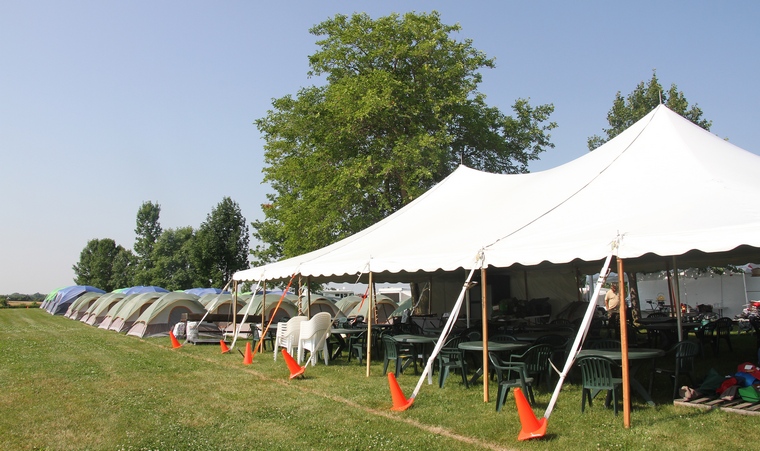 Hunderds of RV's (Recreational Vehicles or Mobile Homes) are already parked at the grounds and the buzz to the build is electric.