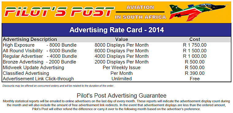 4 October: SAAF Museum flying training and open days. Contact Capt. Kobus Kapp 012 351 2342 or E-mail: webmaster@saafmuseum.org