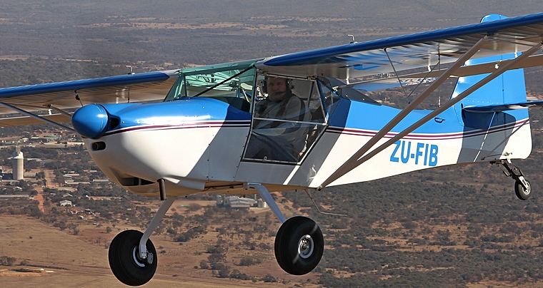 Francois Welgemoed send him solo and today he logged has approximately 1200 hours on 40types that includes the Quicksilver, Aeropakt, Beechcraft, Bellnaca, Tecnam, Vans RV, Sling, Rapid 200, Savanah, various Piper and Cessna types as well as his beloved Kitfox. Hans who has a PPL and Grade 2 test pilots rating says he has no interest in getting an IF or night rating. "If I can't see where I'm going I stay home." Hans said smiling.