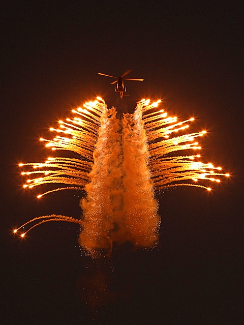 Air power on 16 September deviated from its normal format by only starting after 16.00 with the sun slowly setting behind the Koppies. Run with military precision it finished just after 19.00 with spectacular flare dispensing from an Oryx, Hercules and Gripen.