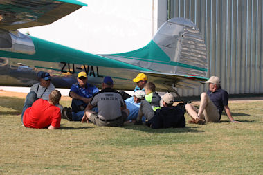At the Eagle Flight Academy Fly-In it is all about aviators, their planes, their stories and jokes. No one tries to sell you anything, nor do you fight the queues to buy something to eat. But beware, you eat much more than you should. On the Friday night we had some wors, lamb chops, beef fillet and pork chops (if anyone wanted some vegetables, they would have slaughtered a chicken). Breakfast Saturday morning, boerie rolls for lunch and a spit braai in the evening. These people are not shy when it comes to food and the ladies in the kitchen did an excellent job in preparing salads, desert or anything else we wanted.