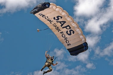 The flying display kicked off with SAPS special task force with parachute jumps and a flying display by a Pilatus PC-6 Porter.