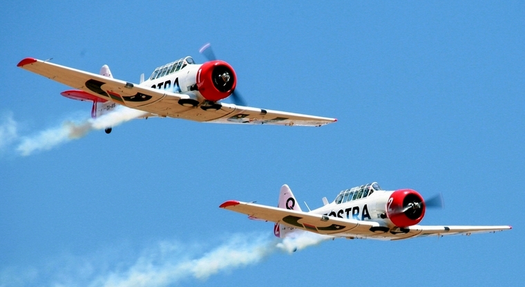 Scully Levin and Arnie Meneghelli of the Equestra Flying Lions Formation Team, with two Harvard AT6 Texans, gave their normal polished flying display.