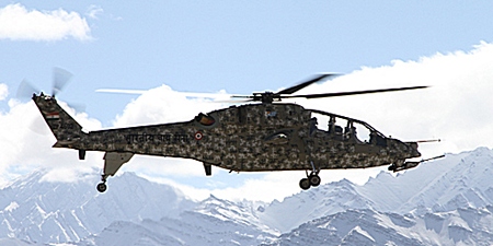 The cold weather trials of LCH were carried out at Air Force Station, Leh recently. "The trials covered engine starts with internal batteries after overnight cold soak at 3 km altitude and 4.1 km altitude", says Mr. T. Suvarna Raju, Chairman, HAL. The engine starts were satisfactory in the temperature of minus 18 degree C at 4.1 km. The flights were also carried out to assess high altitude performance and low speed handling.