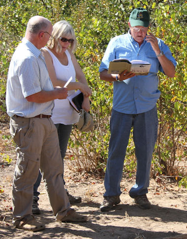 The entire group moved out of Mamba Camp on time, heading for the Puma crash site on the other side of Mapai, stopping in the middle of the drift over the Limpopo River for each member to pick up a large stone to take to the grave site, as per their early morning instructions. Briefly stopping at the Ngala headquarters for Sergio and Miguel to explain some of the intriguing famly history to the gathered families, the group soon arrived at their long awaited destination.