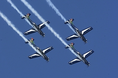 The Silver Falcons, were called on to do a missing man formation for the fallen aviators. The missing man formation was flown for two, airborne, fire fighters that lost their lives in the line of duty. Ex Capetonian, Richard Aschenborn, was fighting a fire in the Piet Retief area when his Air Tractor AT208 crashed on the 15th September 2014. On 8th March 2015, Hendrik Willem "Bees" Marais, was fighting a fire at the Cape Point Nature Reserve when his Bell Huey helicopter went down near Olifantsbos in the reserve. Their wives, Betty Aschenborn and Jaqui Marais, were present at the tribute.