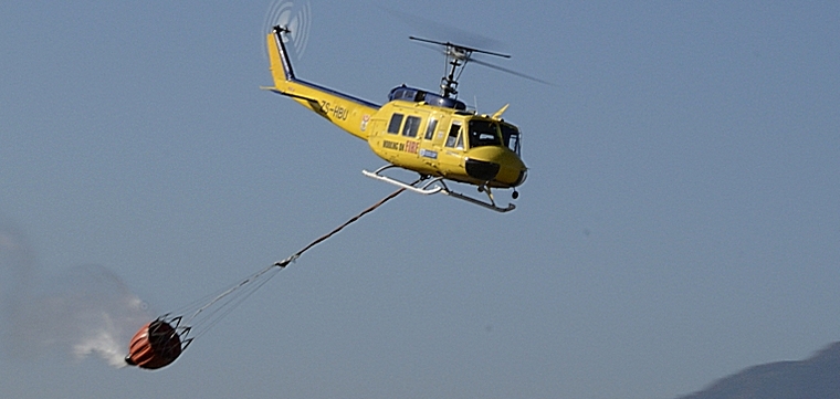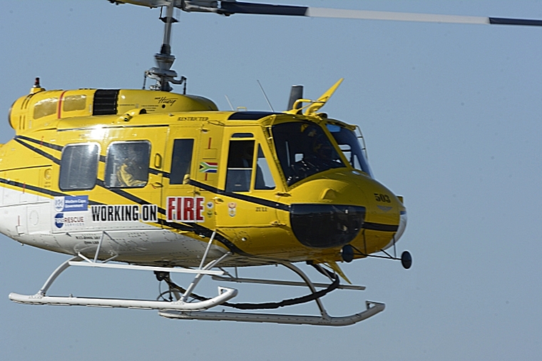 Working on Fire did a simulated fire fight. Mark Jackson and the WoF team from Stellenbosch did a display that included fire bombing from an Air Tractor AT 208 and a Bell Huey using a Bambi Bucket. They also demonstrated how a line of "fire Beaters" go about their business.