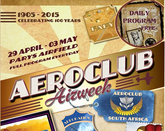 1May-3 May: Aero Club Air week at Parys airfield contact Kev Storie 011 082 1100 Website: www.aeroclub.org.za
