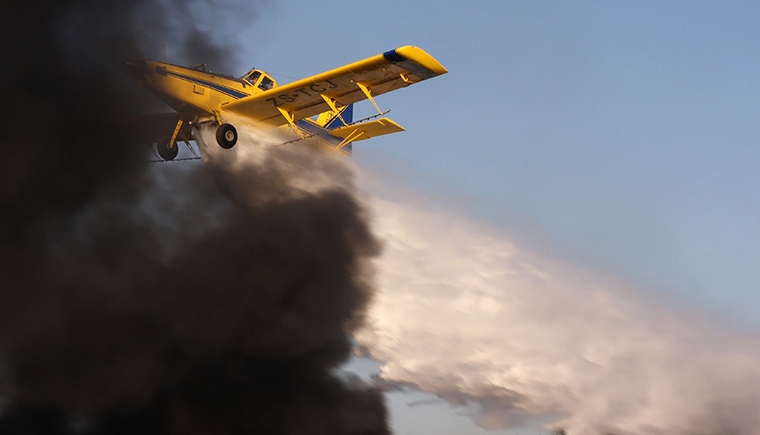 Once again the relative quiet of the bushveld was shattered by the whistling magnificence of the Mustang, this time accompanied by pyrotechnics. The P51 did a few machine gun strafing runs followed by some massive bombing runs and finally a vehicle explosion and 100m wall of fire. The burning vehicle presented a perfect opportunity for the Air Tractor, flown by Kahn de Jager, to do its thing dropping water with pinpoint accuracy.
