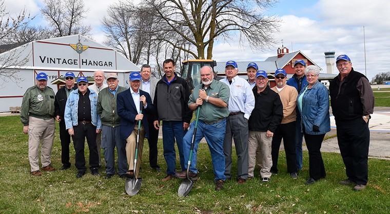 EAA Chairman Jack Pelton joined Vintage President Geoff Robison and the Vintage Board of Directors at the ground-breaking for the expanded Vintage Plaza. Behind them are EAA Vice President Rick Larsen and EAA Director of Facilities Steve Taylor. The new plaza, made possible by a generous gift from VAA member Myrt Strong Rose of Barrington, IL, in memory of her late husband Bill, will be dedicated on Monday, July 20, the opening day of EAA AirVenture 2015.