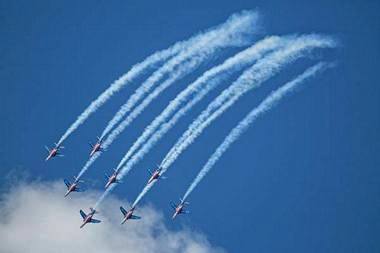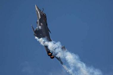 130 aircraft including the Falcon 8X, Dassault Aviation's latest business jet that went on show in public for the first time, and likewise the Airbus A350 and A400M. Dassault Aviation's Rafale, Bombardier's CS 300, the JF17 fighter from Pakistan, the Boeing 787 and the Airbus Group's E-Fan all drew huge crowds.