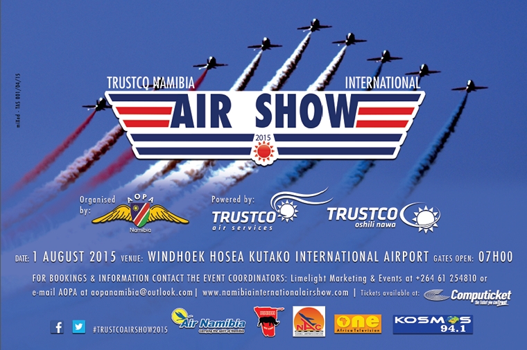 1 - 2 August: Namibian airshow. Contact Reinhard Gartner e-mail: reinhard@fivestar.co.za Visitors flying in for the Air Show via South Africa are reminded of the supplementary return SAA flight on the 1st of August 2015 from Johannesburg to Windhoek. Seats for these flights can now be booked online or at travel shops and details thereof are as follows: