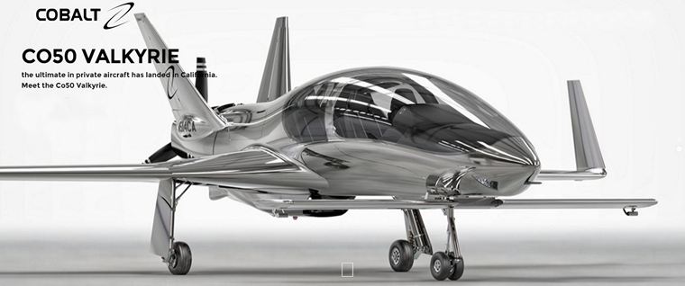 San Francisco-based Cobalt as it has unveiled its new sleek aerodynamic single-engine five seater Co50 Valkyrie. The stylish canard wing Valkyrie powered by a turbocharged 350-hp Fadec-equipped Continental engine mounted at the rear will have a claimed speed of 260 knots whilst the forward mounted canard wing will makes it harder to stall.