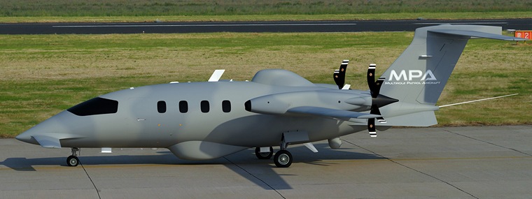 Fully compatible with the unmanned HammerHead system, the MPA is developed by Piaggio Aerospace in partnership with ADASI - Abu Dhabi Autonomous System Investments - and represents a significant evolution of the P.180 Avanti platform, including: 50% increasing of the wing span; 35% increasing of the horizontal tail and 20% increasing of the forward wing surfaces; Significant upgrade of the power plant with new scimitar propeller blades and noise reduction; Increased fuel tanks capacity (50%)