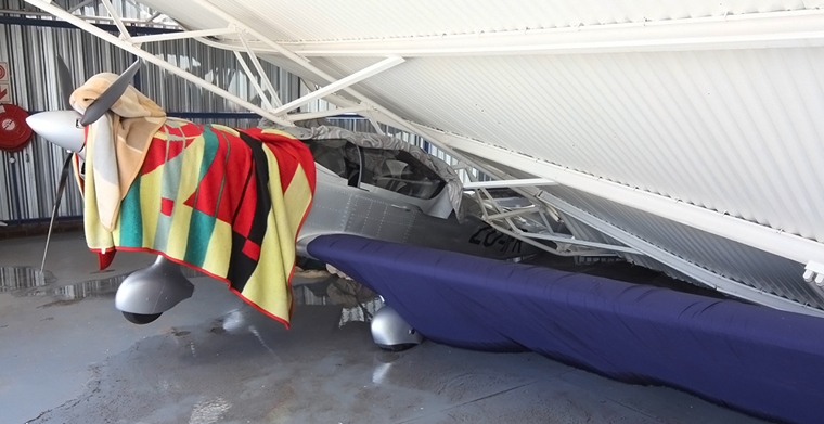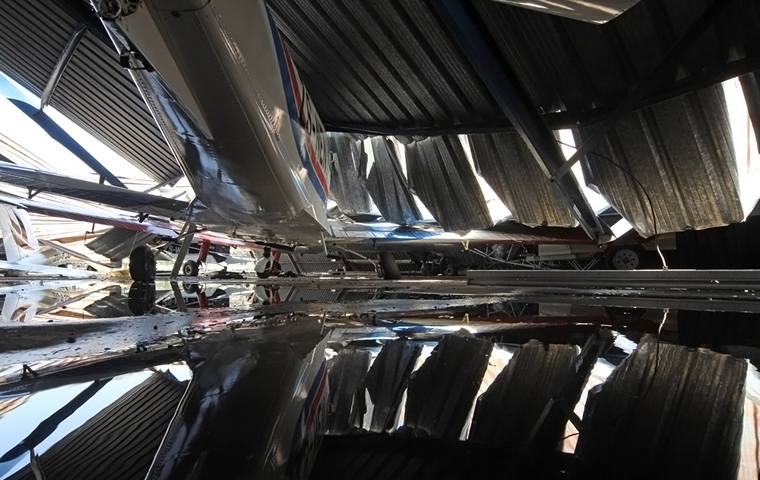 A devastating hail storm ripped through the Springs area wreaking havoc to the hangars on the southern side of Springs Airfield, the base of a large number of historic aircraft. No less than four hangar roofs collapsed under the weight of the hail that packed on them.