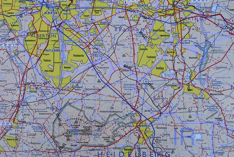 Then, the mission of getting started and slotting into the airport traffic pattern which was very busy this day given the good weather conditions, everybody was out flying so the controller had her hands full getting the participants to get off the ground at the take-off slot time, many got off late, including us with an 8 minute delay, thus getting to the start point in time was difficult to say the least. The route flown started south of the silver ball then further south past Kliprivier and the Sedibeng brewery (which had a leg photo that had to be recognised) then along the scenic southern perimeter of the Suikerbosrand, then up north over the marshlands of the Marievale bird sanctuary, then west past Springs with some short twisty legs all the way back to the finish point nearby Romeo Delta and with the tail wind getting the aircraft slow enough proved challenging.