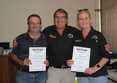 With everybody back safe, some lunch with a few cold ones cracked open while Frank & Cally tallied up the scores and downloaded loggers. Prize giving was then held with the fun class being won by Ago Perreira and Chris Linakis who walked away with the Rand Trophy. The Open class was won by veteran team Adrian Pilling and Mary de Klerk with an excellent score of 27. Many thanks extended to Frank & Cally (Cally worked out this marvellous route) for the organising, and the sponsors Comav, Avimap & ACL for support and prizes. The next rally is at Virginia on the 5th of March and then the Nationals competition on the 15th of April.