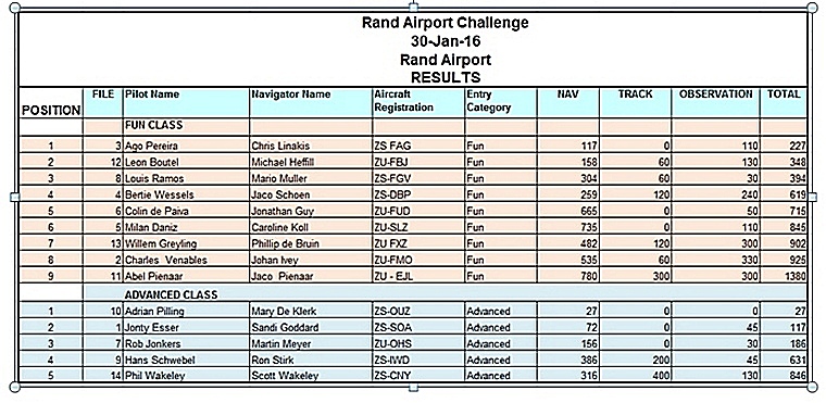 The South African Power Flying Association held the 12th Consecutive year of the Rand Airport Challenge on Saturday the 30th January 2016. It was an excellent weather day for flying, with no convection clouds brewing, although there was around a steady 15 kt easterly wind. This attracted 14 teams to participate in the rally, 5 in open class and 9 in the fun class, with 4 newbie first timer teams, which is a welcome sign that there is good interest in the sport.