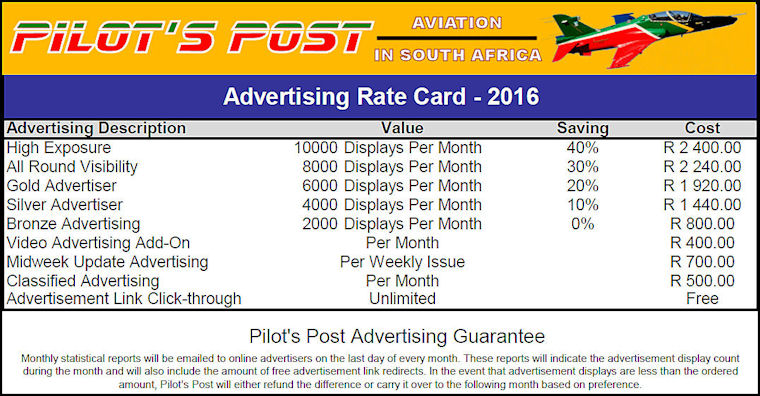 29 March - 3 April: FIDAE International Air & Space Fair Santiago, Chile. Contact website: www.fidae.cl African Pilot will be attending this exhibition