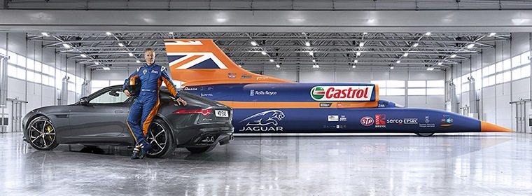 The Jaguar F Type R AWD with Andy Green and BLOODHOUND SSC. Photo © Flock and Siemens