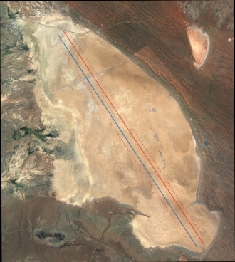 Hanksteen Pan. Photo © European Space Agency. A full survey by Bloodhound partners in the attempt, the Northern Cape Government, to confirm the work required almost ended South Africa's participation when it was revealed that the shale bed was breaking up underneath the playa surface would cause major problems. Fortunately there was an alternative-Hakskeen Pan.