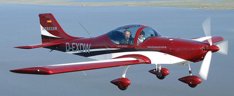 The Breezer is an all metal, German built Light Sport Aircraft (LSA). This wonderful aircraft is no "new kid on the block", but a well proven, 10 year old design that has beautiful and docile handling to match its exceptional, German build quality. The LSA aircraft will Max Cruise at 118kts (with a Normal Cruise of 103 kts) fuel burn of between 13-22 litres of MOGAS per hour (average, depending on cruise setting). The Breezer is completely built from scratch, in the factory, using German Materials and its own machinery in its manufacture.