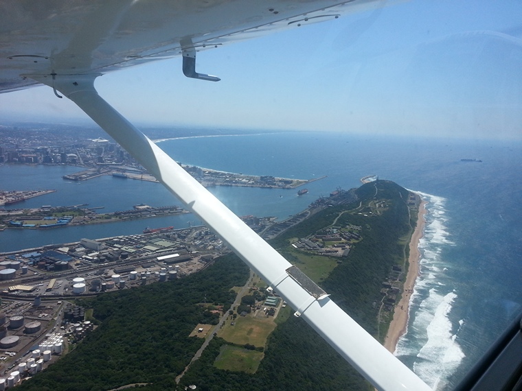 The finish was over the old Durban airport and then return to Virginia via the harbour mouth for a long final onto Runway 05 for a spot landing on a black line which was elusive to see on the black tar runway against the contrast of the sun, and also had to contend with wind shear as the wind the dropped off being blocked off from the seawards facing dunes.
