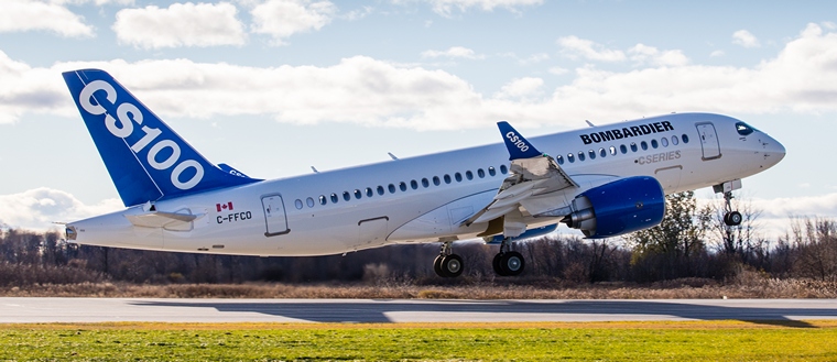 BOMBARDIER C SERIES AIRCRAFT ROUTE-PROVING TAKES OFF IN EUROPE