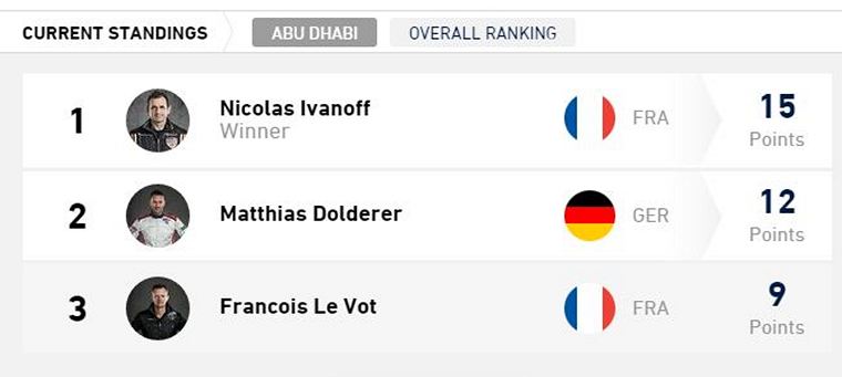 With the retirement of 2015 World Champion Paul Bonhomme, the 2016 title for the world's ultimate motorsport series in the sky is anyone's to seize, and the heat was on. The day was packed with shocks: Matt Hall of Australia, who was ranked number one after finishing second overall last year, hit a pylon and failed to advance beyond the opening round for only the third time in his career. Another top favorite, 2008 World Champion Hannes Arch, gave fans a similar surprise after flying brilliantly through the early rounds only to earn a disqualification in the Final 4 for passing the Safety Line. Arch finishes the race in Abu Dhabi without any points, due to his DQ result.