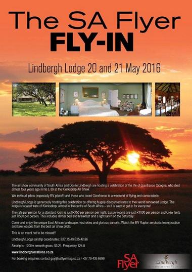20-21: SA Flyer mag and Doolie Lindbergh are hosting a very special Fly-in to Lindbergh Lodge, west of Klerksdorp. The fly-in will be partly in memory of Gianfrano who died in his L-39 at the Klerksdorp air show 4 years ago.