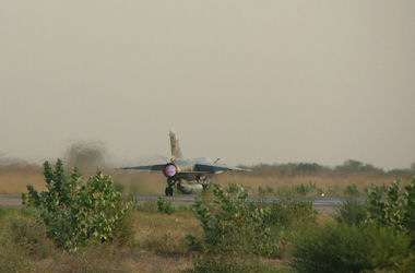 All of a sudden I was excited to be there and I returned to the porter to get more information. It turned out that there were seven Mirage F1 fighters based in Ndjamena to patrol the country's borders daily. One will remain on standby (or time-off) while the other 6 take off at 5AM and return at 11AM after completing a full flight round the country's borders. He also added that the tanker I saw on my arrival was used for inflight refuelling. The tanker takes shortcuts to a few designated points while the jets would take the longer route and rendezvous with the tanker a few times during each sortie. With this exciting information, I was now even more determined to get a few photographs and at 10:30, I was hiding under a tree next to the airport boundary wall. A Puma helicopter took off just before the jets returned and hovered in the area. I assume that this was for surveillance and to secure the area.