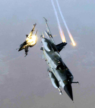 The jets returned without any warning and with an explosion right above my head, I was too scared to take the photo being unsure if the explosion was directed at me. But with the second jet approaching, I could see that it fired something like a thunderflash which exploded right above the boundary wall. I realised that this was standard procedure but I am still not sure why they did it. I guess it is to chase birds or perhaps to create awareness, I really don't know.