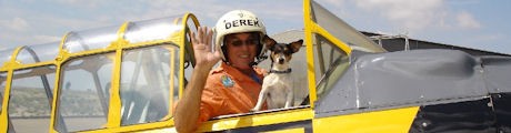 Derek Hopkins: The man behind the cheeky slogan stitched onto his flying suit. ‘I refuse to grow up’